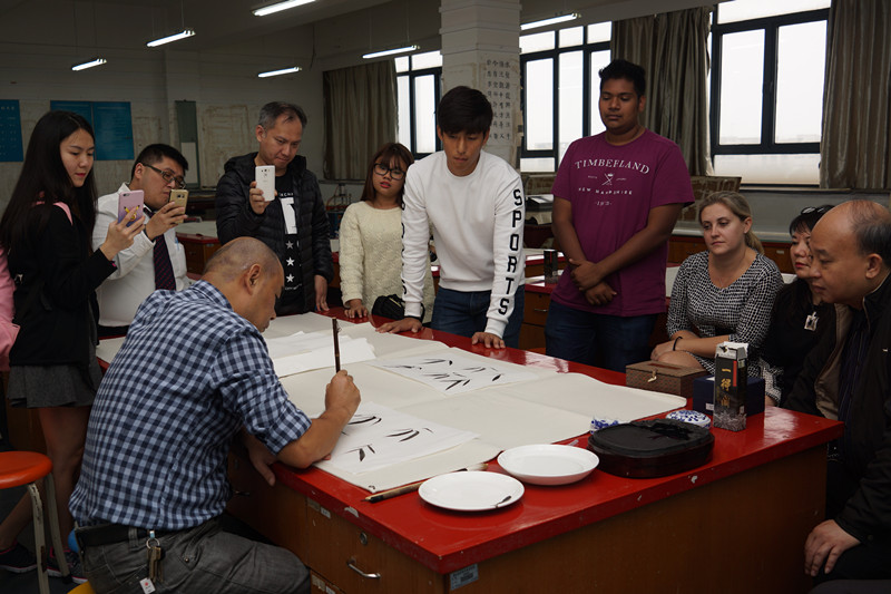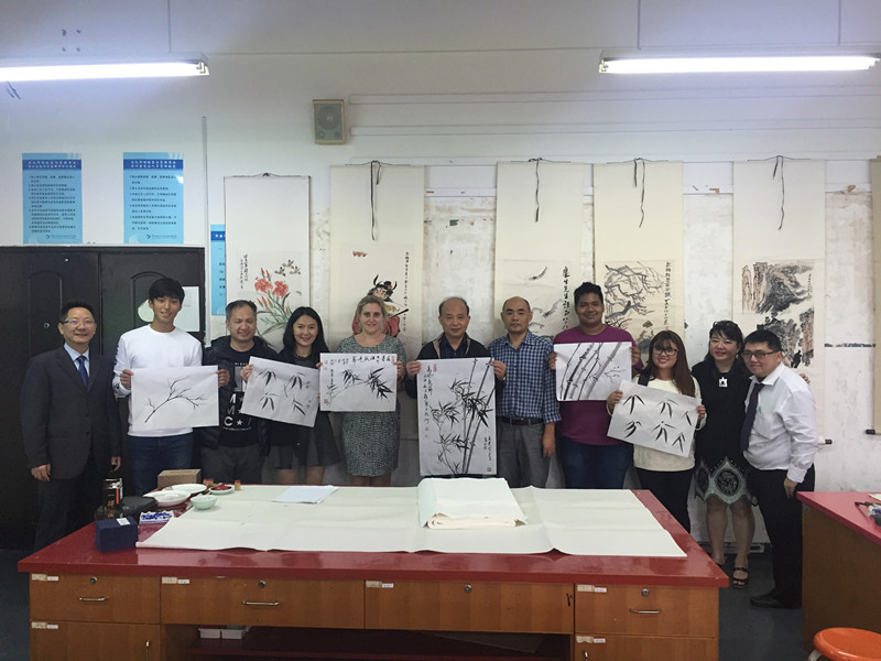 日前,新加坡管理发展学院中国区首席代表宗君伟先生(Chong Kwan Wai)、新加坡管理发展学院酒店管理学院高级经理卡萝尔(Carol)女士以及海外课程发展部主任凯蒂(Katie)女士等一行5位老师携4名该校学生抵达我校。为弘扬中国传统文化,推进国际化特色高校的建设,我校文化艺术学院副院长朱红亮教授举办了书画主题传统文化讲座,宗君伟先生、卡萝尔女士等新加坡客人聆听了书画主题传统文化讲座,并参观了我校文化艺术学院的书画实训室。讲座结束后,新方客人与朱红亮教授进行了文化交流互动。