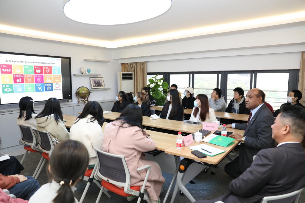 11月28日上午,联合国教科文组织驻华代表处教育专员Robert Parua先生在我校做题为“创业以及职业技术教育与培训的技能开发”的讲座。外事办主任郑刚强教授对Robert Parua先生的到来表示了欢迎,我校部分教师以及部分来自文化艺术学院英语专业和中英合作班的学生参加了讲座。