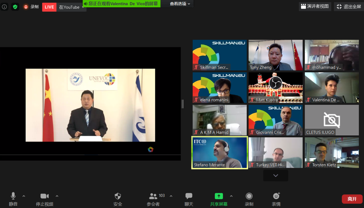 12月10日,世界工匠网络联盟(Skillman.eu)举行了主题为“Redefining the future of learning”(重新定义未来学习)国际视频会议,来自意大利、中国等85个国家和国际劳工组织(ILO)、科伦坡规划教育学院(CPSC)等相关国际机构的100多位代表参与研讨交流,我校作为中国唯一代表受邀参会。开幕式上,副校长黄春麟教授作了题为“中国职教的抗疫经验”的主旨演讲,引起了与会者的强烈兴趣,纷纷提问要求介绍更多的经验和应对方法。