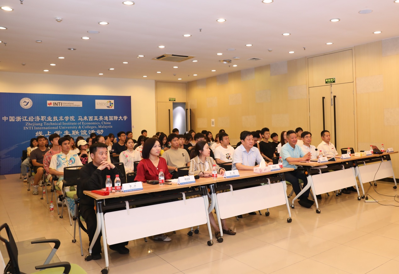 我校副校长黄春麟出席交流会,外事办(国际教育中心)主任郑刚强、我校“双高”建设专业群所在分院财会金融学院院长王茜、商贸流通学院党总支副书记程凡和物流与供应链管理学院代表以及相关学院师生共100多人参加此次联谊会。马来西亚英迪国际大学助理校长赖燕玲等校领导和80余名英迪大学学生代表在线上参加了本次联谊会。我校学生代表聂左佳,马来西亚英迪国际大学学生代表分别分享了两校在疫情期间线上学习做出的应对措施以及个人线上学习的经验和感受。