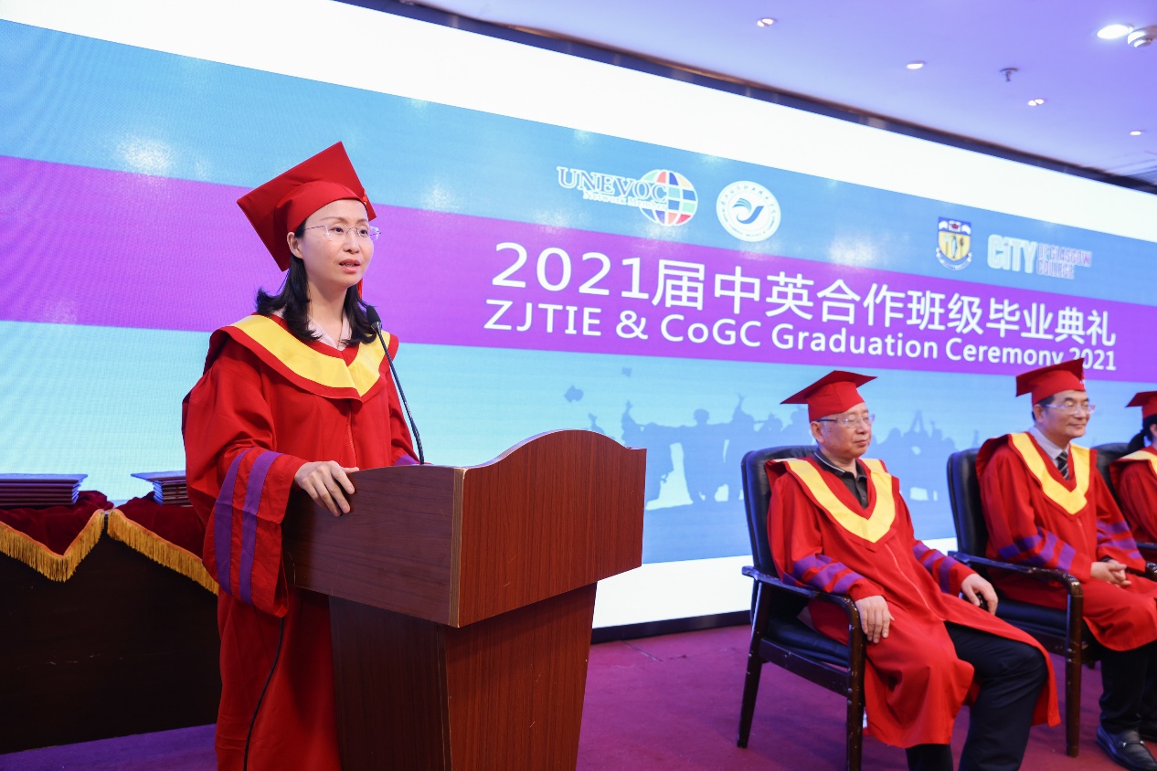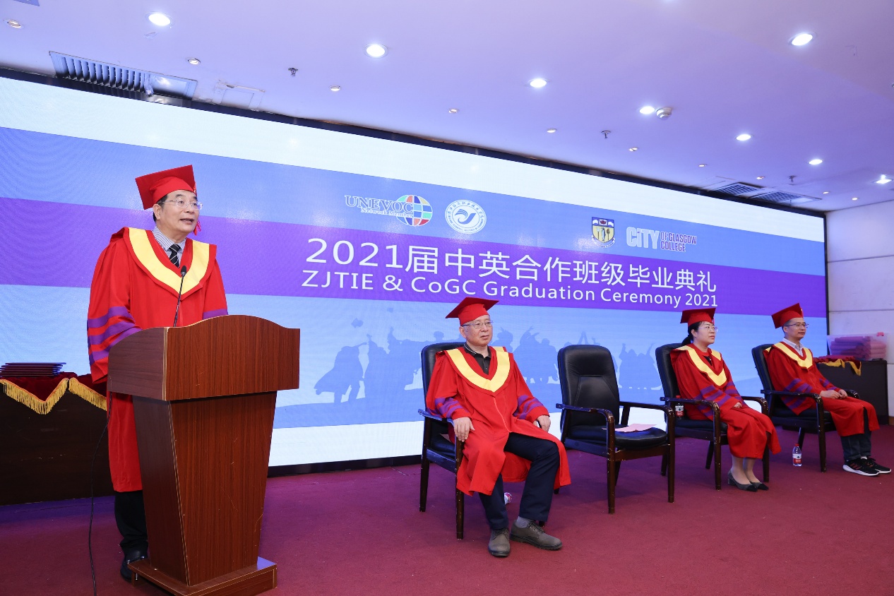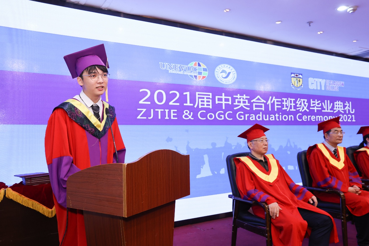 受到疫情的影响,英方合作院校,格拉斯哥城市学院的校领导未能像以往一样到校参加毕业典礼,但是格拉斯哥城市学院依然以视频的方式为毕业生同学们送上祝福,期待他们在工作岗位上能学以致用,也期盼两校合作办学能结出更丰硕的果实。