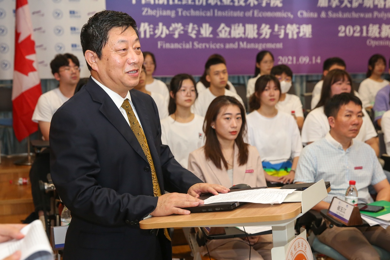 9月14日,金秋送爽、丹桂飘香,我校举办了中加、中英合作办学专业新生开学典礼。在上午首先举办的中加合作办学专业开学典礼上,我校与加方合作校——加拿大萨斯喀彻温理工学院进行了开学典礼的现场直播连线。加拿大萨省理工学院校长Dr. Larry Rosia,副校长兼教务处处长Dr. Has Malik,国际事务助理副校长Thevi Pather,国际教育部部长Annie Fu,大中华区负责人Rachel Huang,商学院院长Muthana Zouri,商学院主管Kristen Craig和Erin McMahon,系主任Morai Forer等领导一同在线上参加了会议,并分别对同学们表达了祝贺和期许;我校党委委员、副校长黄春麟,党委委员、组织部(统战部)、宣传部部长、财会金融学院联系领导陈专,教务处处长潘凤钗、学生处处长柳虹和财会金融学院党总支书记易际培、财会金融学院院长王茜等领导出席了开学典礼。开学典礼由外事办公室主任郑刚强主持,金融服务与管理专业中加合作班的部分任课老师和全体新生同学共同参加了开学典礼。