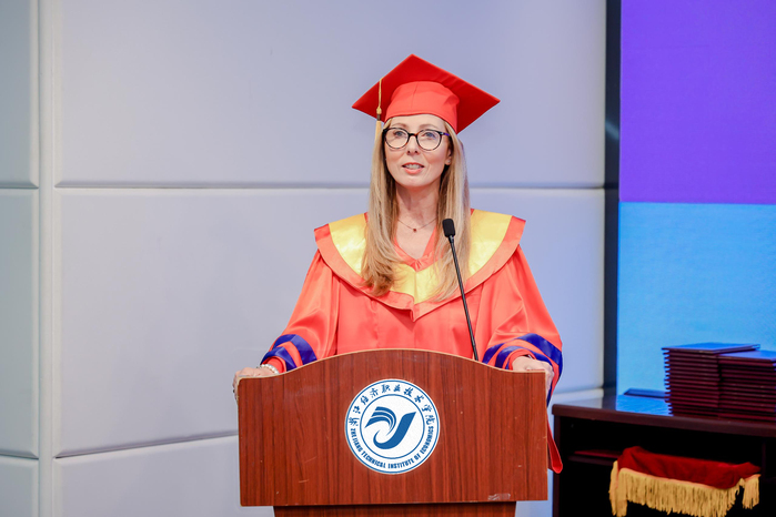 Carla Gethin也发表了热情洋溢的致辞。她回顾了中英合作办学项目十年来的发展历程,并祝愿全体毕业生未来的职业道路上取得成功。